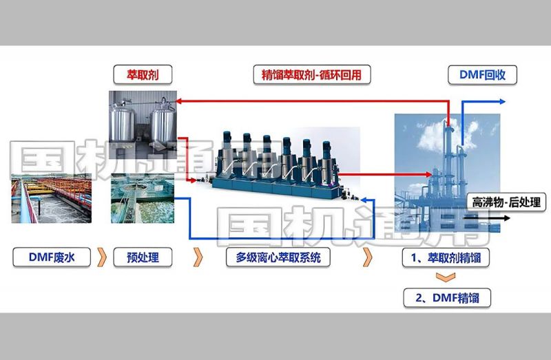 湿法回收工艺可将退役动力锂电池中稀贵金属如锂、钴、镍等提取出来,实现资源的循环利用。工艺过程一般是先经预处理,将电池材料进行酸浸,使金属氧化物溶于溶液,再通过溶剂萃取、化学沉淀或电解沉积等方式来回收其中的有价金属,其中离心式溶剂萃取法因其提取效率高、绿色经济等优势,应用较广。