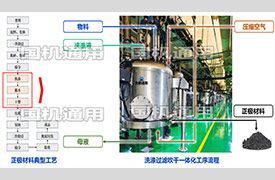 在固渣过滤洗涤工序,MY三合一机集浆化、洗涤、过滤、吹干等功能于一体,减少转运环节,生产效率高,浆化洗涤方式可节省洗涤液用量,密闭及自动化带来较佳操作环境。技术参数及结构可按需定制,常用过滤面积最大12m2,满足不同规模退役电池回收项目需求。