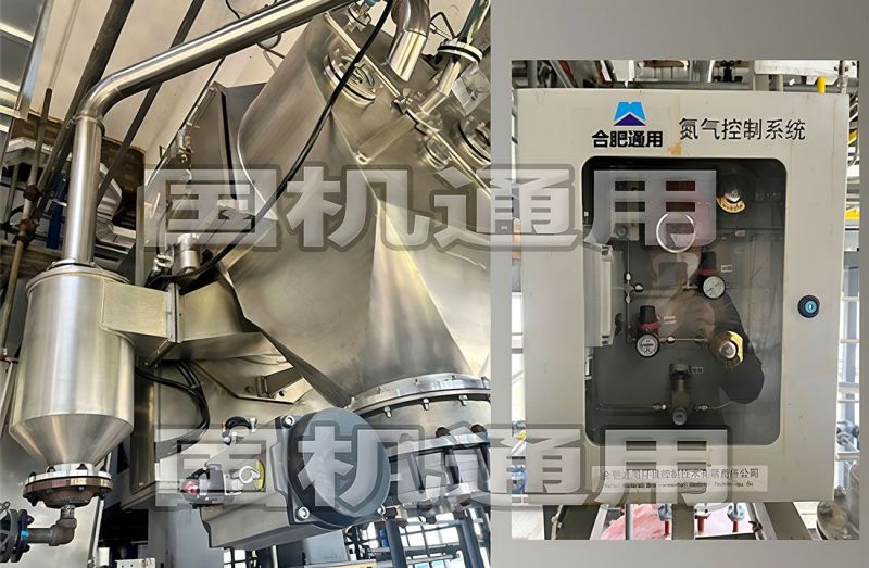 合肥通用环境公司研制的FWZ翻袋式自动离心机,采用专利技术的机械传动双轴系结构,内外轴系均能实现可靠密封,转子工作区内实现微正压惰性环境,隔离空气,很好的保证高密度聚乙烯催化剂安全生产;同时翻袋动作完全卸除物料,批次过滤性能达到最佳化。通过配备在线充氮测氧、自动化程序,现场基本无需人员值守。
