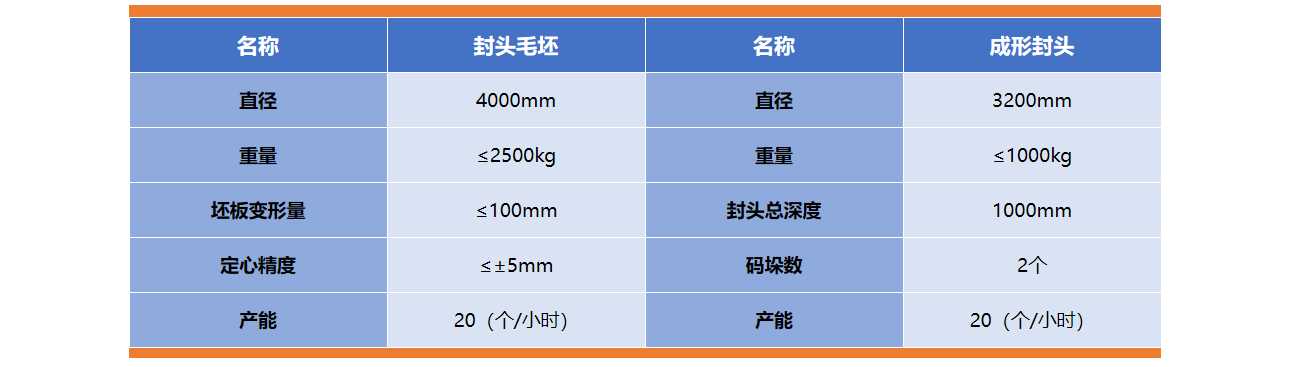 - •系统通过上料装置、定心机构、封头取料装置、下料装置各部件实现从毛坯封头的上料、定心、送入,到压制成形后的移出、下料和码垛等全过程自动化,无人化操作